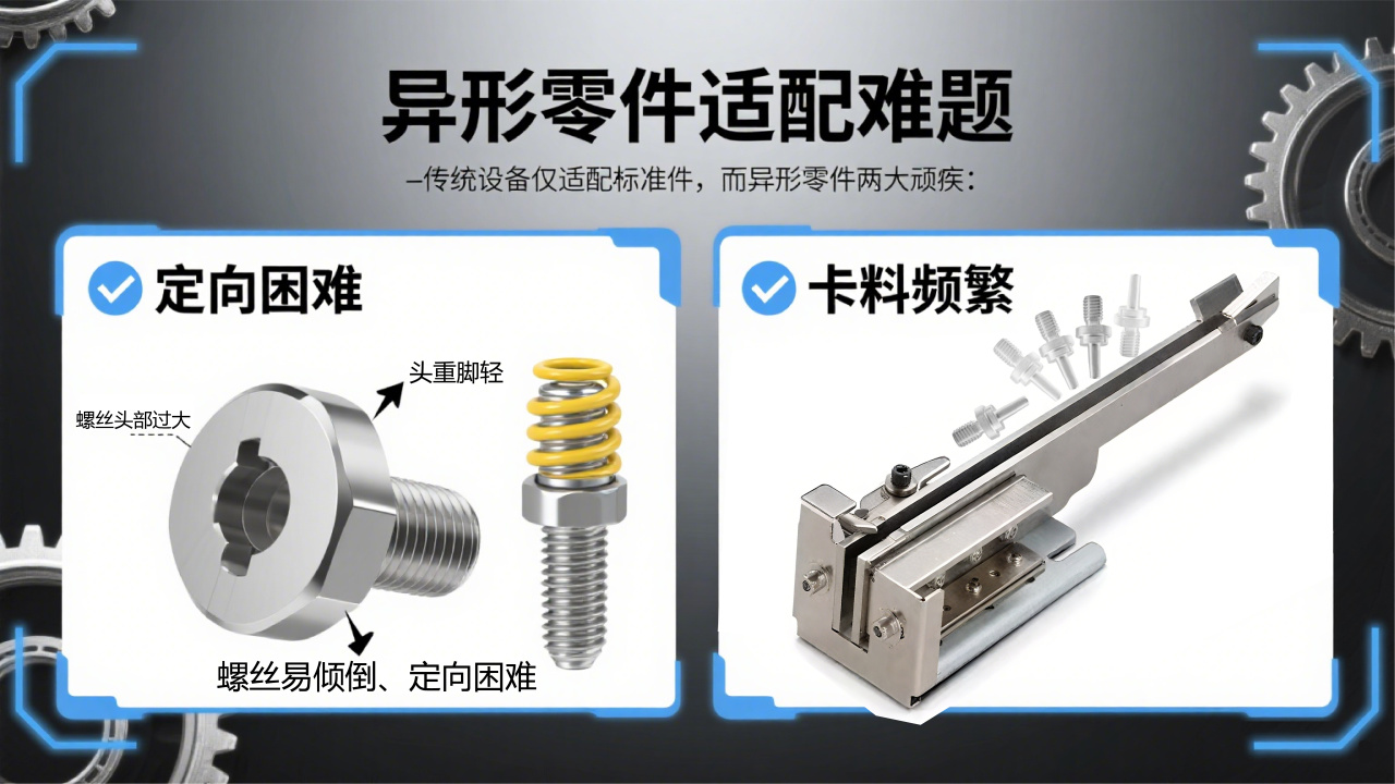 ✅ 定向困難:如偏心螺栓重(chóng)心偏移、帶彈簧螺絲的彈力幹擾